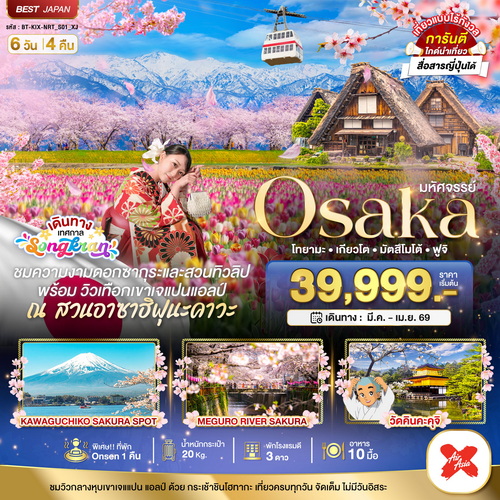 มหัศจรรย์ OSAKA โทยามะ เกียวโต มัตสึโมโต้ ฟูจิ 6 วัน 4 คืน
